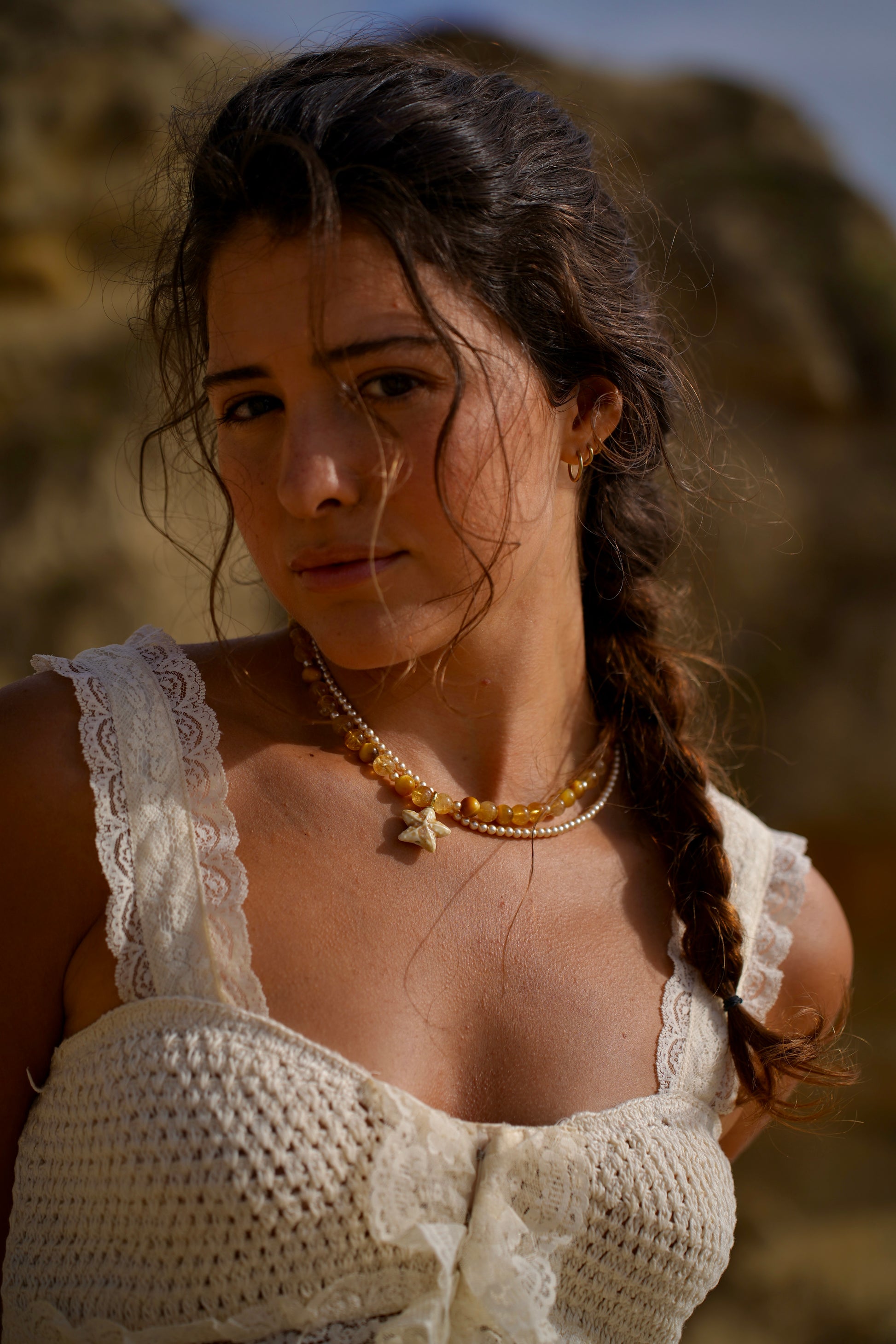 This Tigereye Starfish Necklace is a must-have for any fashion enthusiast. The dazzling tigereye beads are complemented by a stunning starfish charm, adding a touch of elegance to any outfit. The Swarovski pearl necklace included completes the look, making it the perfect accessory for any occasion.